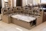 Кухненския ъгъл включва диван 3-ка, ъгъл и диван 2-ка. Отделните модули дават възможност за обръщане на ъгъла в зависимост от помещението и предпочитанията. Модел Галакс предлага и една допълнителна функционалност. Практичната ракла под седалката на 2-та ще ви осигури място за съхранение на багаж. Чрез издърпване на подматрака ще получите удобно легло, което е идеалното решение когато ви е необходимо допълнително място за сън. Габаритни размери: 200 см/ 150 см/ 60 см, седална височина: 45 см. Наличен в три цветови комбинации, отбелязани на снимките. При поръчка на дамаска по избор - срок за доставка - 25 работни дни.