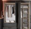 Тапицерията е тъмно сива и пасва на цялотното излъчване, като също допринася и за комфорт. Гардеробът е с удобно разпределение с лостове и рафтове, което да ви улесни максимално.