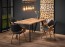 Трапезна разтегателна маса DICKSON с елегантен и красив дизайн, изработена с плот от МДФ в цвят естествен дъб и стоманени крака в черен цвят, прахово боядисани.
