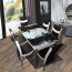 Трапезен комплект Рони включва маса с разтегателен плот от термо - закалено стъкло и 6 броя столове.